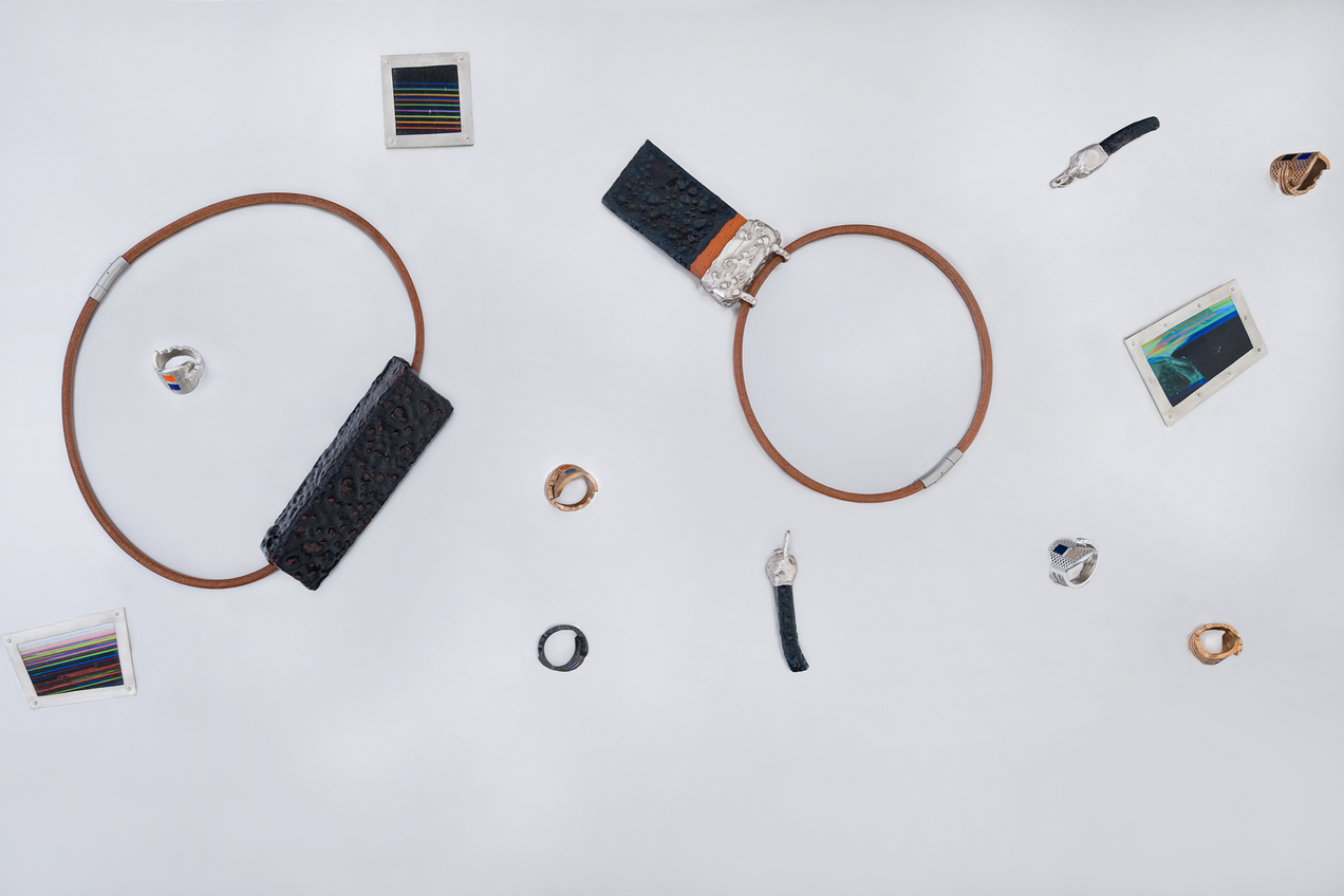 In der Ausstellung „Mulberry Tubes“ zeigt die Schmuckkünstlerin Ela Nord Werke aus ihren beiden Kollektionen BRAZIL und IMAGO sowie eine Auswahl an Schmuckstücken, die in Kollaboration mit befreundeten bildenden Künstlerinnen und Künstlern entstanden sind.