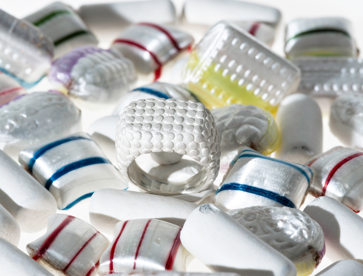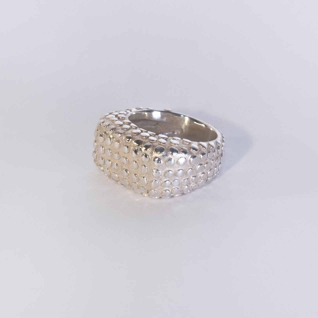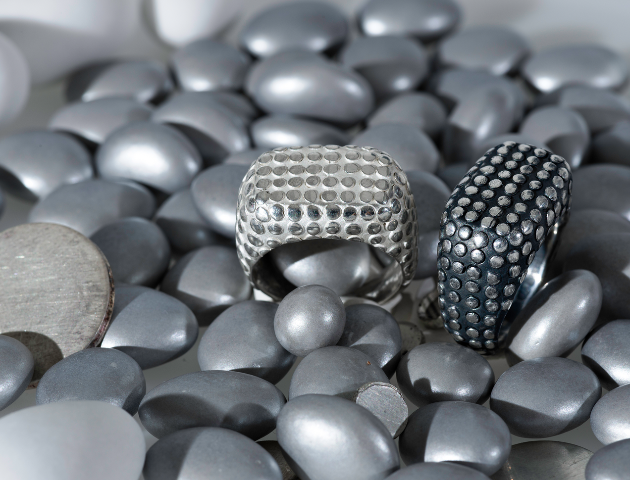 Ela Nord has always been attracted to and fascinated by the juxtaposition of this form, which is why the nub (or perhaps known as a small bump), as a structure, has been used in her jewellery since the beginning. To practice a quasi-controlled application, the ring series FLATNUBS was eventually created and various FLATNUBS series have been continuously produced since 2015.